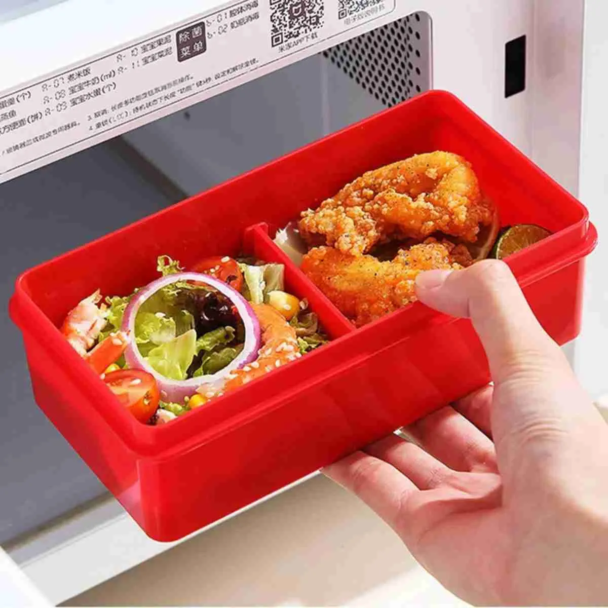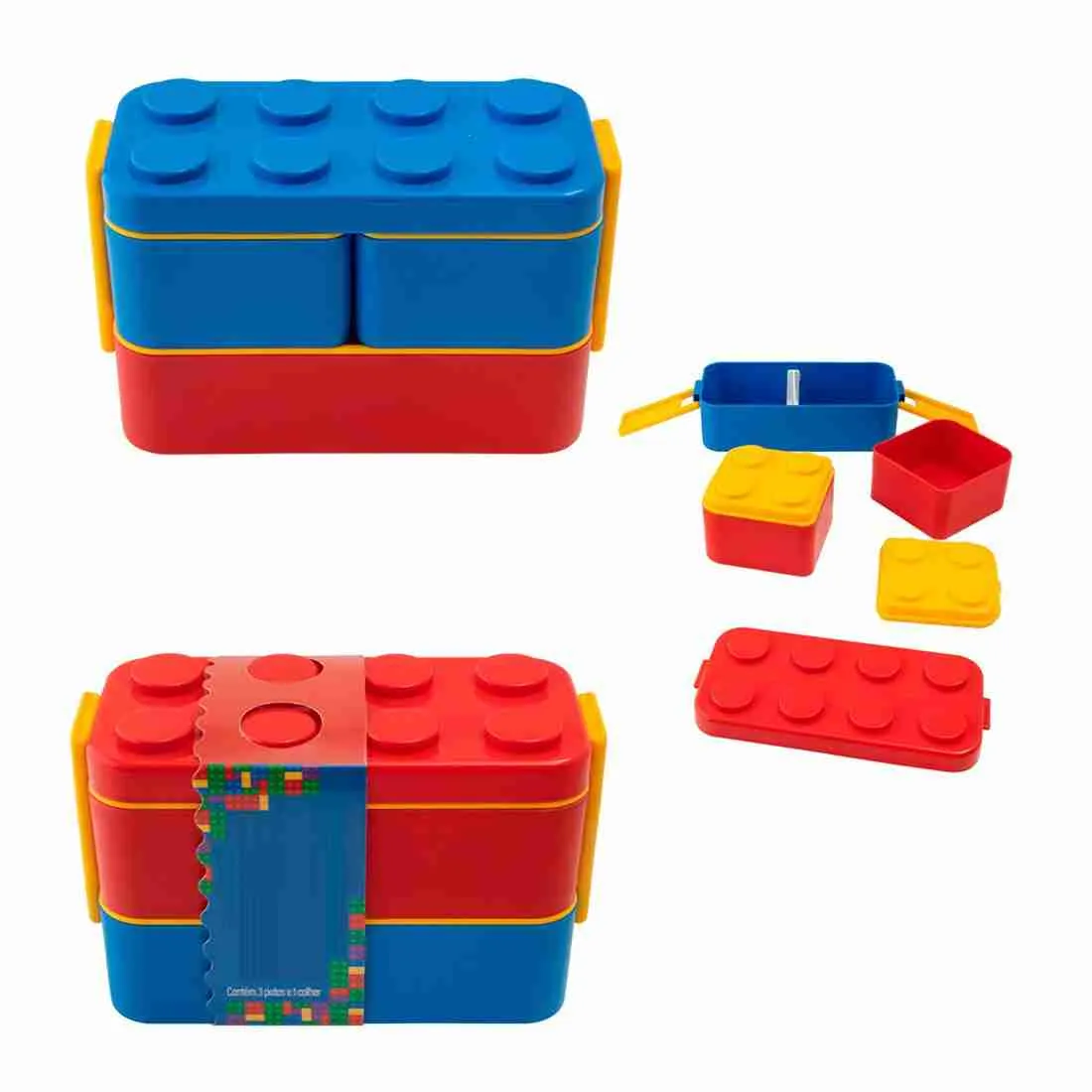 Organização Prática: Contém 3 potes (1 grande e 2 menores) para separar os alimentos.