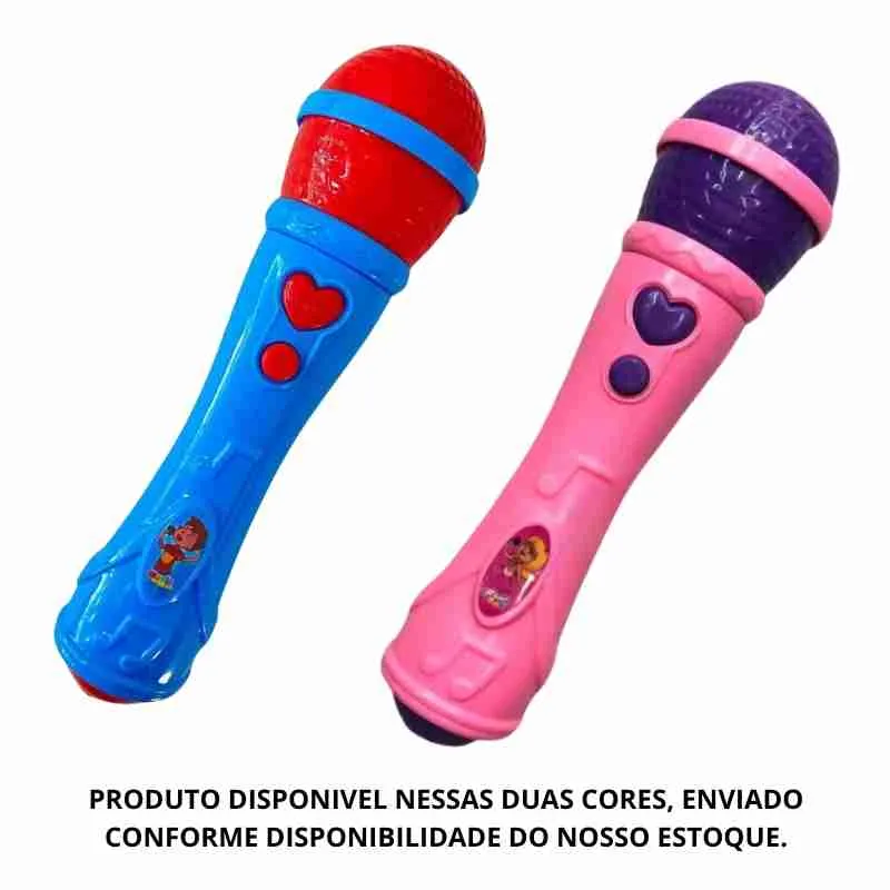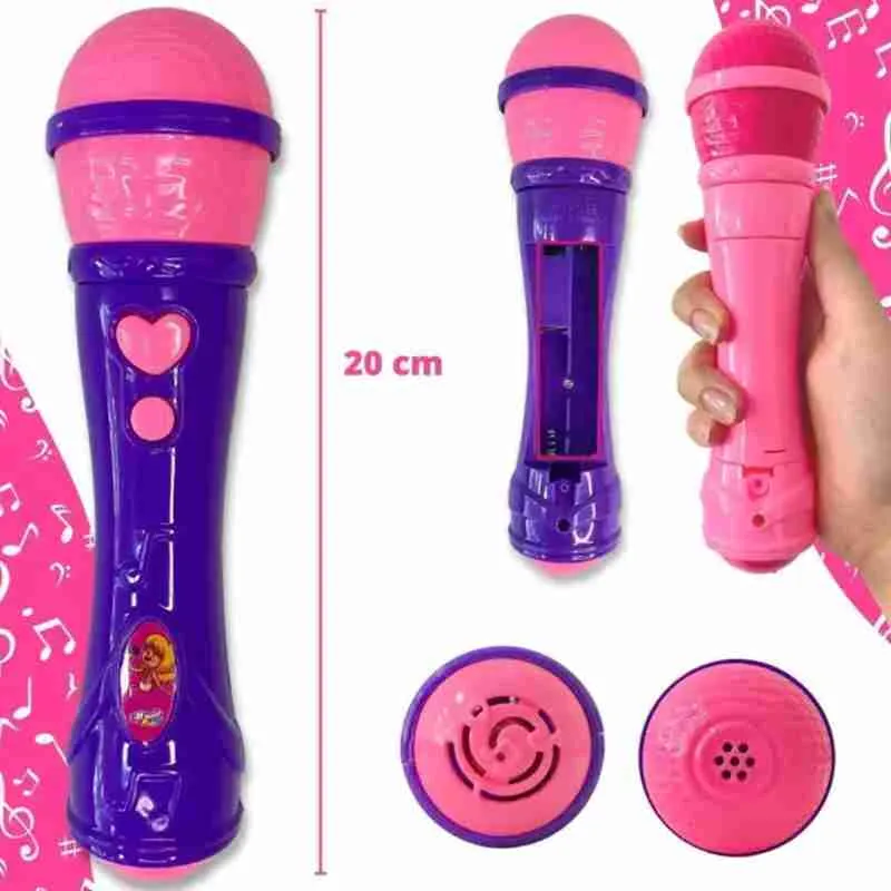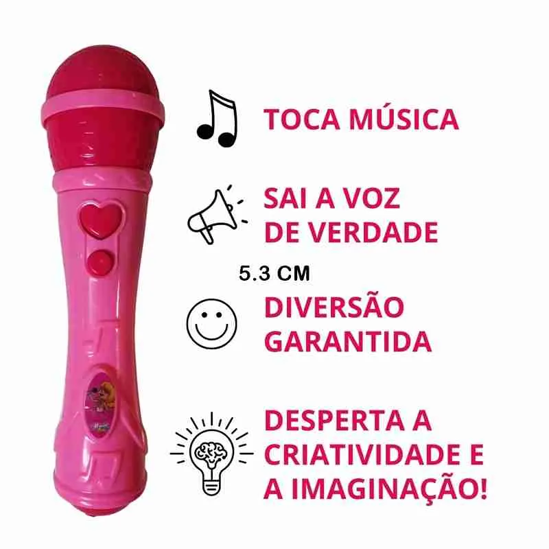 Este microfone é alimentado por pilhas AAA, o que significa que pode ser usado em qualquer lugar, sem a necessidade de uma fonte de energia. É um brinquedo que promove a criatividade e a expressão pessoal, ajudando a desenvolver a confiança e as habilidades de comunicação das crianças.