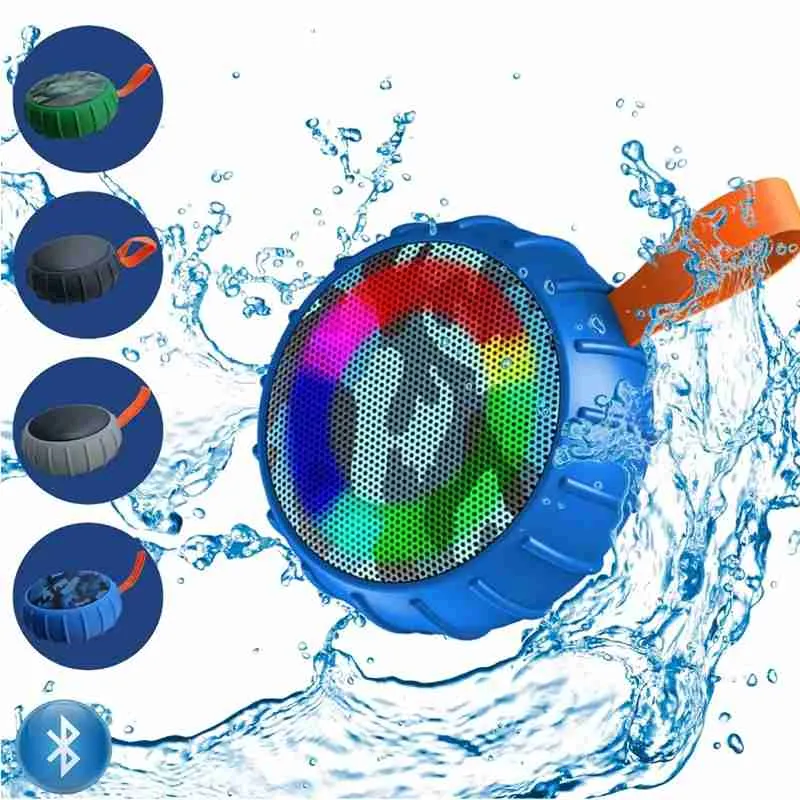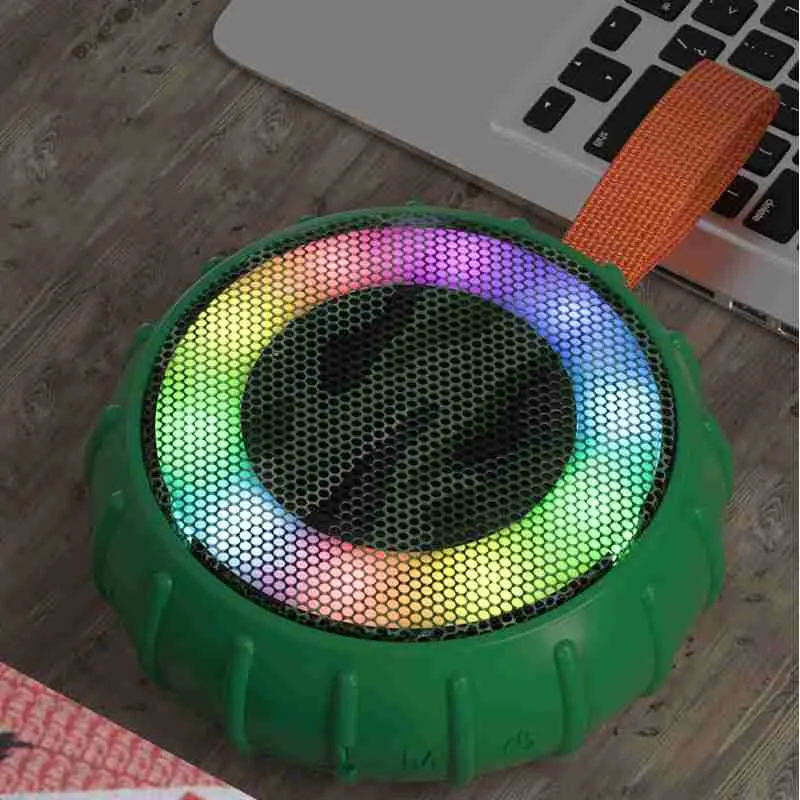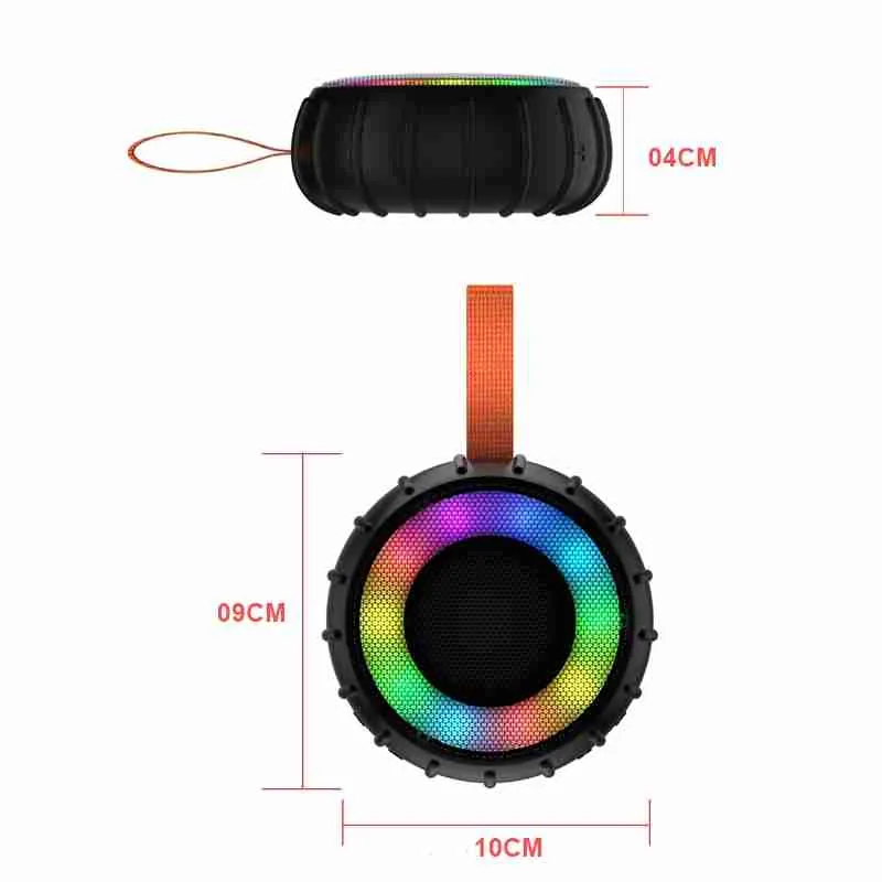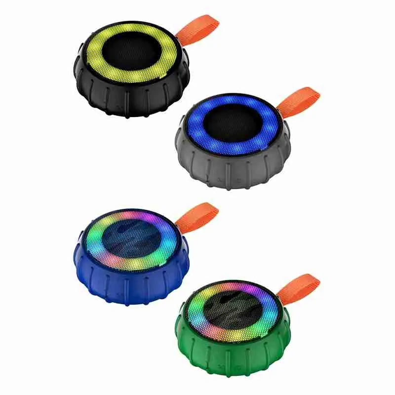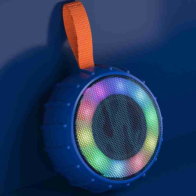 A Mini Caixa de Som Emborrachada Potente Bluetooth Resistente à Água com luz RGB combina recursos de áudio de alta qualidade com elementos visuais.