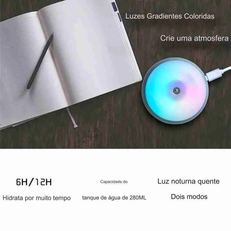 Mini Umidificador E Aromatizador LED Multicolorido – 280ML