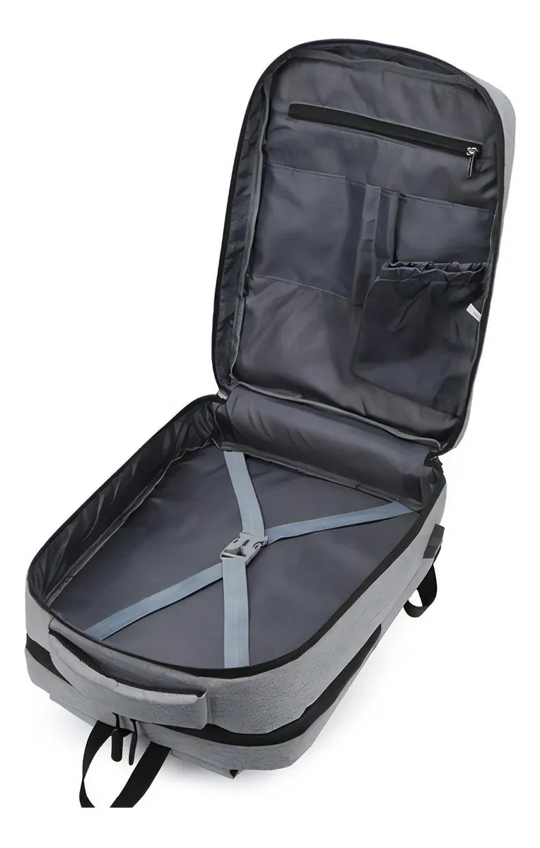 A mochila conta com compartimentos bem distribuídos, o que facilita a organização interna e o acesso rápido aos objetos. Além disso, amplia a praticidade no dia a dia, permitindo separar acessórios, documentos ou itens pessoais de forma eficiente.
