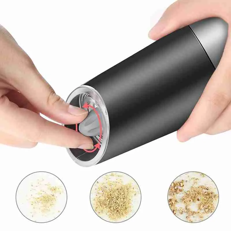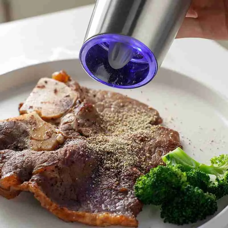 Usado como moedor de pimenta elétrico e moinho de sal automático com operação simples com uma mão.