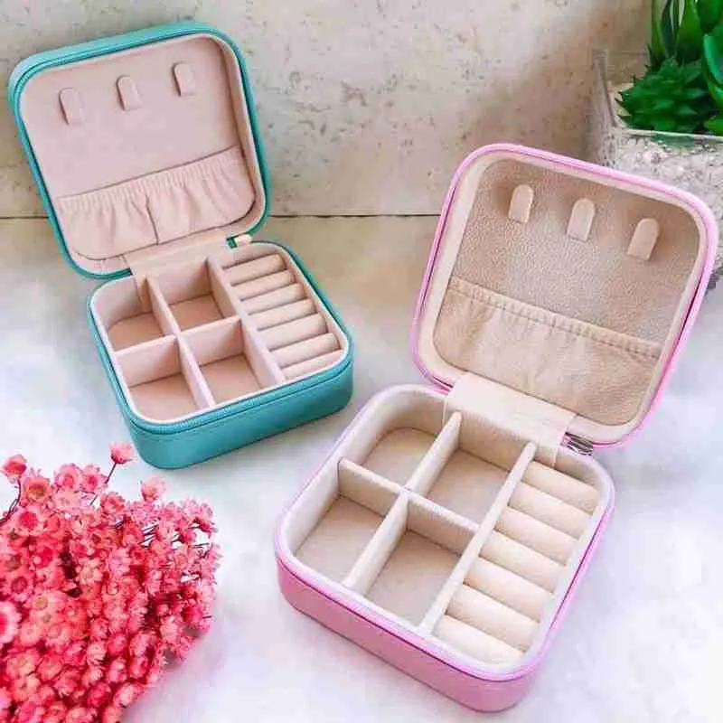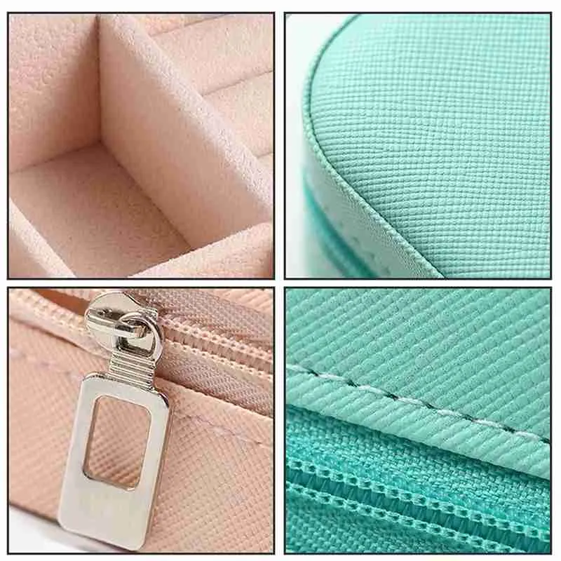 O Mini Porta Joias Portátil Estojo Com Zíper é leve e conveniente, com vários compartimentos, você pode colocar brincos, broches e outras necessidades diárias. O sulco de anel pode conter 6 anéis ou vários pares de brincos.