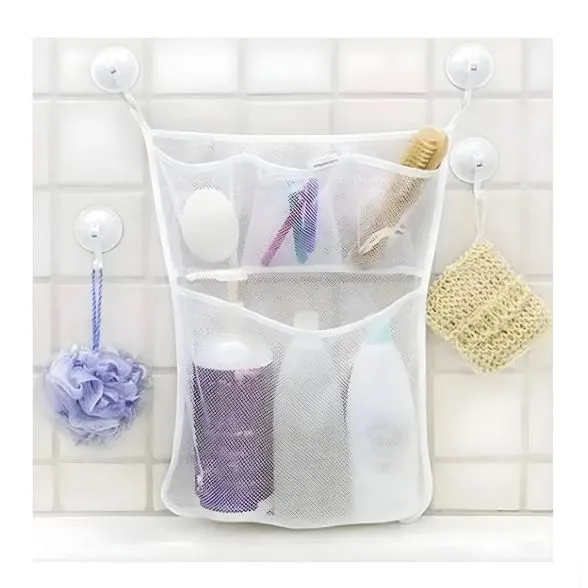 Durante o banho, você guarda os brinquedos com facilidade e, logo após, mantém tudo acessível para o próximo uso. Dessa forma, a organização se torna simples e constante. Além disso, o material leve permite manuseio rápido, enquanto o formato em rede evita o acúmulo de água.