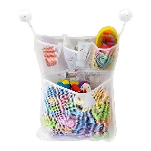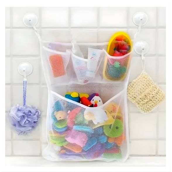 Recomendado para organizar brinquedos de banho de bebês e crianças, mantendo o banheiro mais limpo, organizado e funcional no dia a dia.
