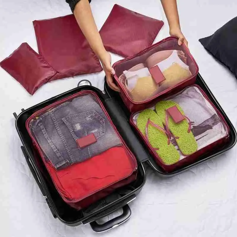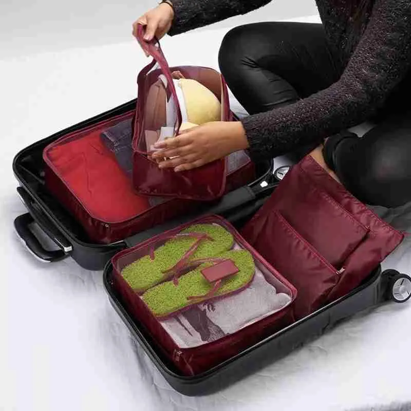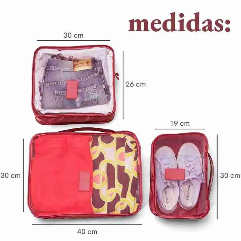 Organizador De Mala Para Viagem Kit 6 Peças Nécessaire Bolsa