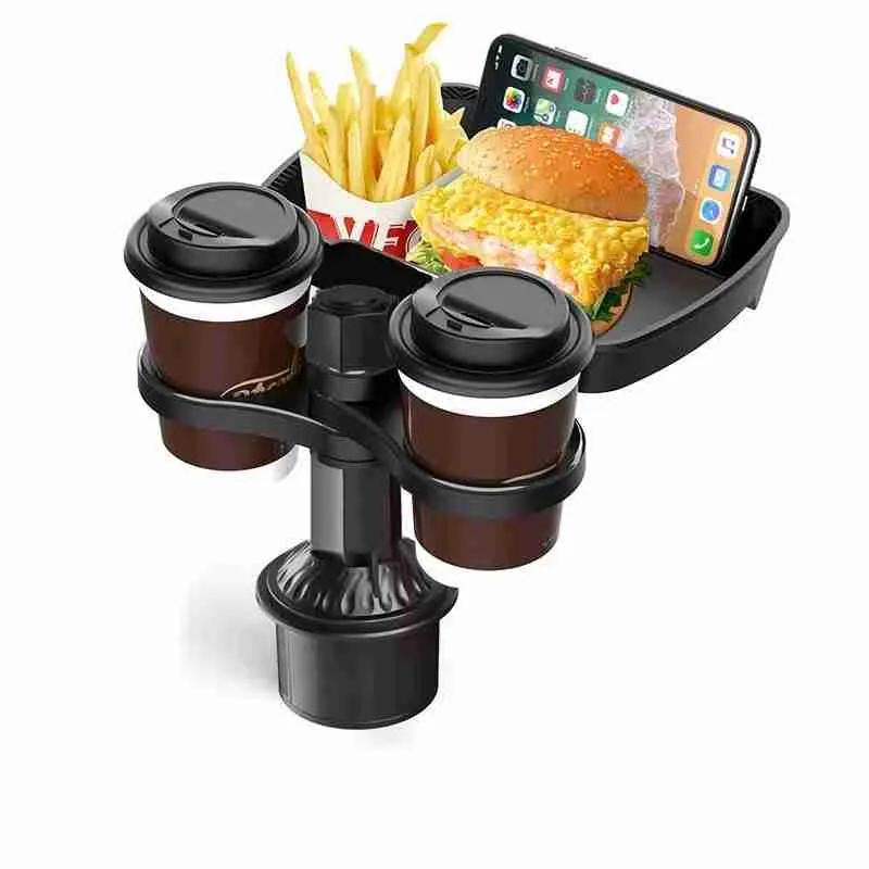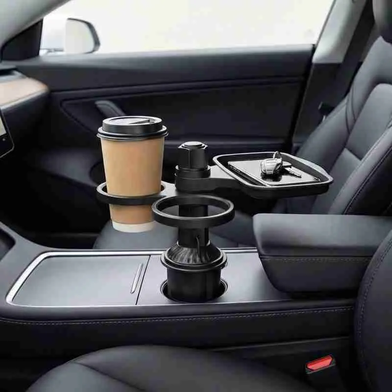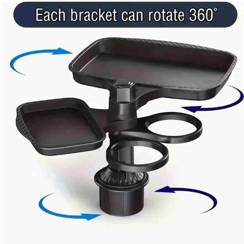 Organizador Multifuncional de Carro com Bandeja e Porta-Copos Giratórios 360°