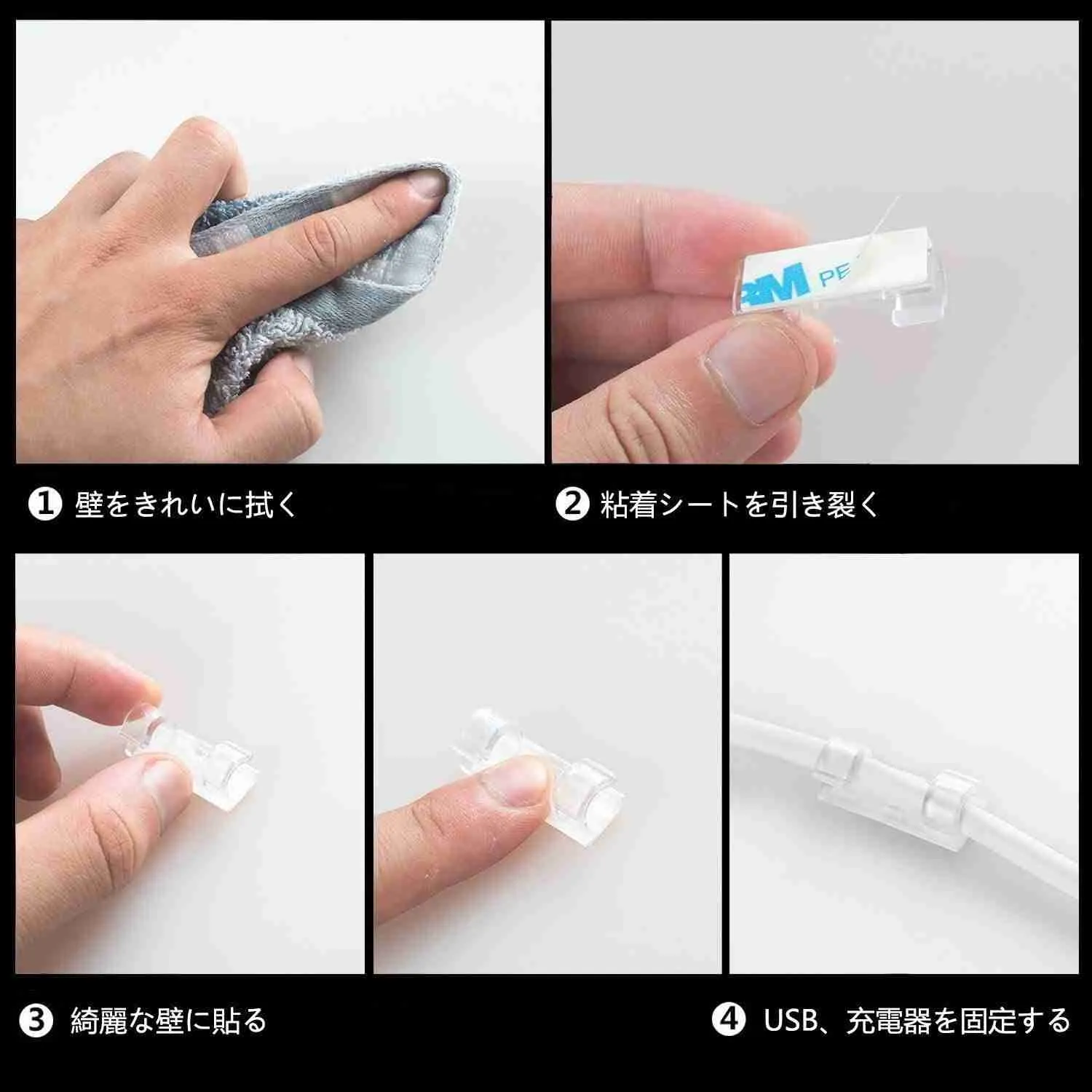 Para instalação do suporte organização cabos, basta retirar o papel protetor do adesivo 3m, colar na parede ou superfície limpa e seca e passar os cabos e fios como desejar.