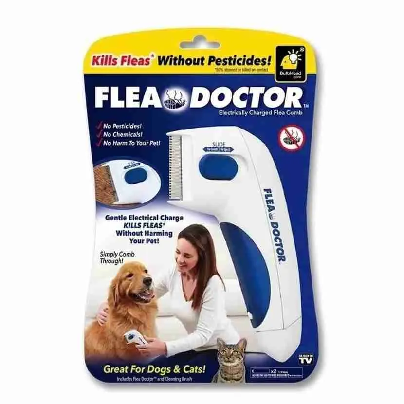 – Pente com suave carga elétrica que funciona para matar pulgas, carrapatos e piolhos, sem causar dano ao seu animal de estimação, pois não possui pesticidas ou produtos químicos.