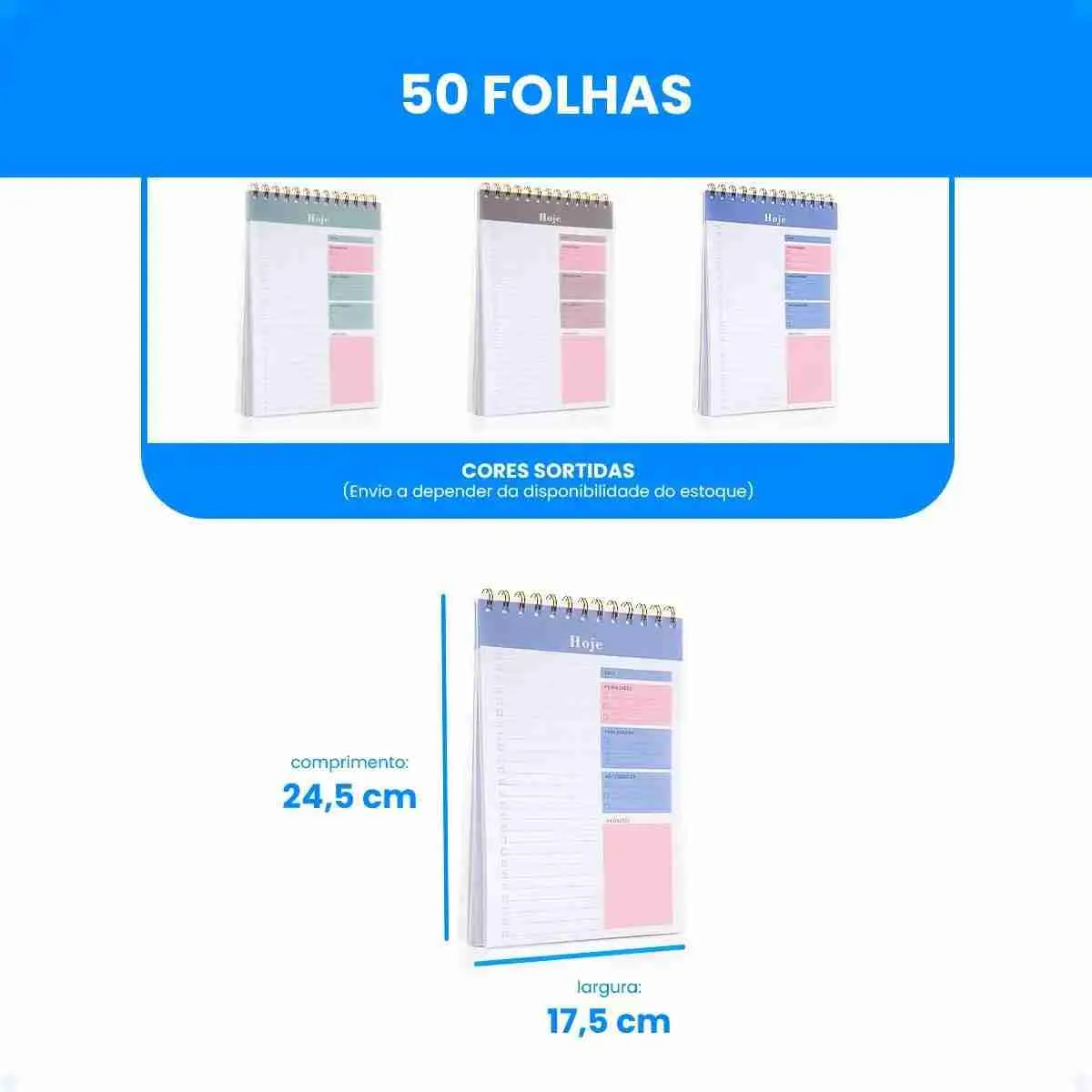 Planner Diáio Vertical Espiral com Checklist – 50 Folhas