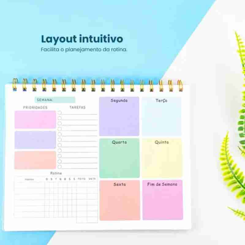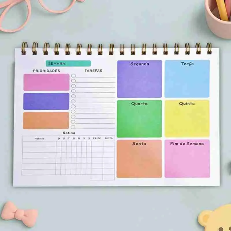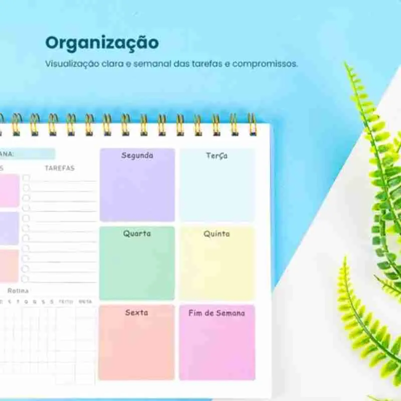 Prático, colorido e funcional, este planner é ideal para organizar sua rotina semanal de forma clara e divertida. Com layout inteligente, ajuda a definir prioridades, planejar tarefas e acompanhar hábitos, tornando o seu dia a dia mais produtivo.