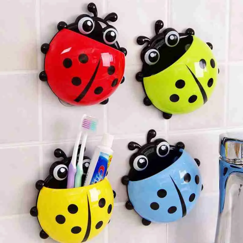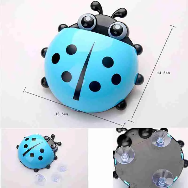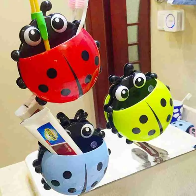 Porta Escova e Pasta De Dente Joaninha Com Ventosa de Parede