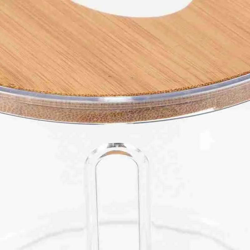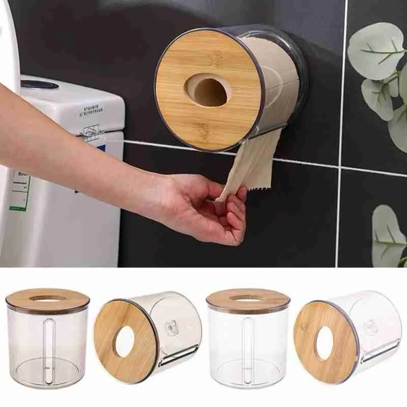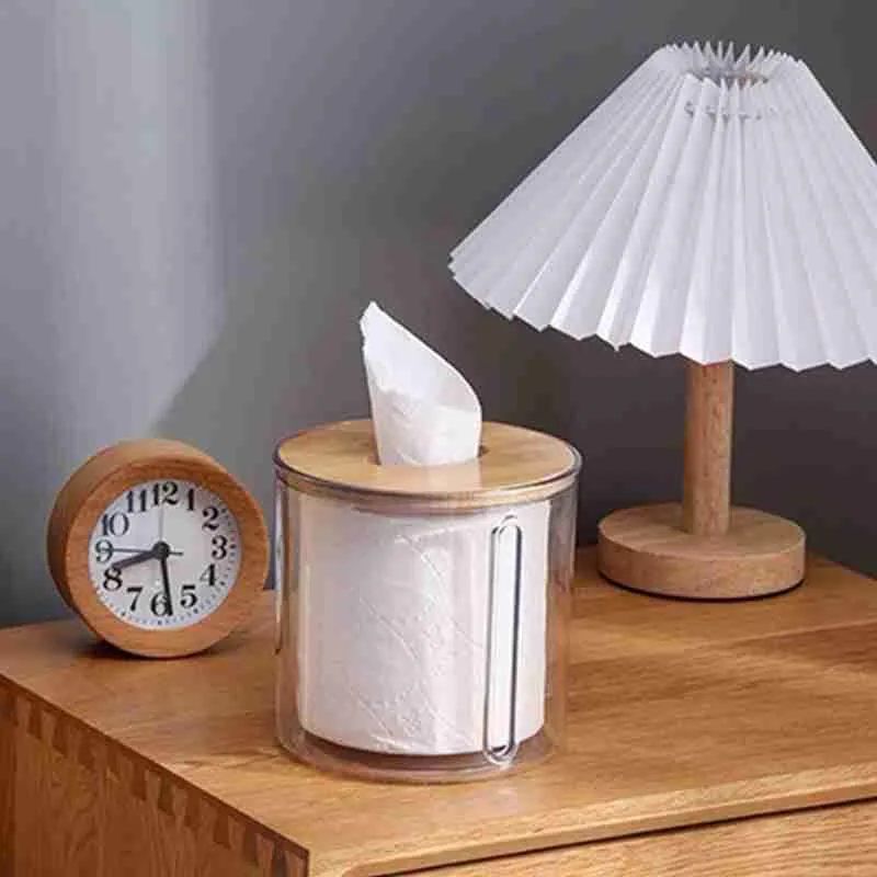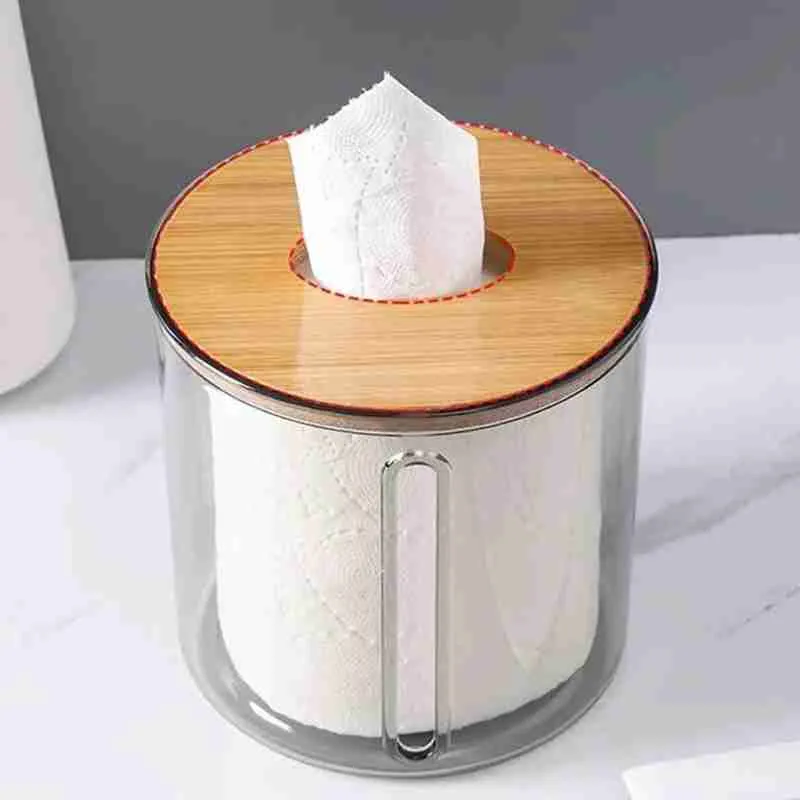 Porta Papel Higiênico Luxo Transparente Com Tampa De Bambu