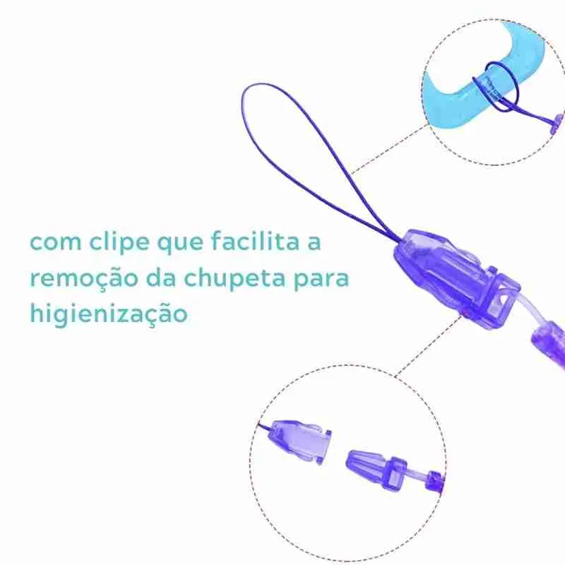 Compativel com a maioria das chupetas disponíveis no mercado, embora seja sempre importante verificar a compatibilidade com a marca e o modelo específico da chupeta que você pretende usar.