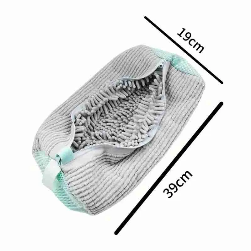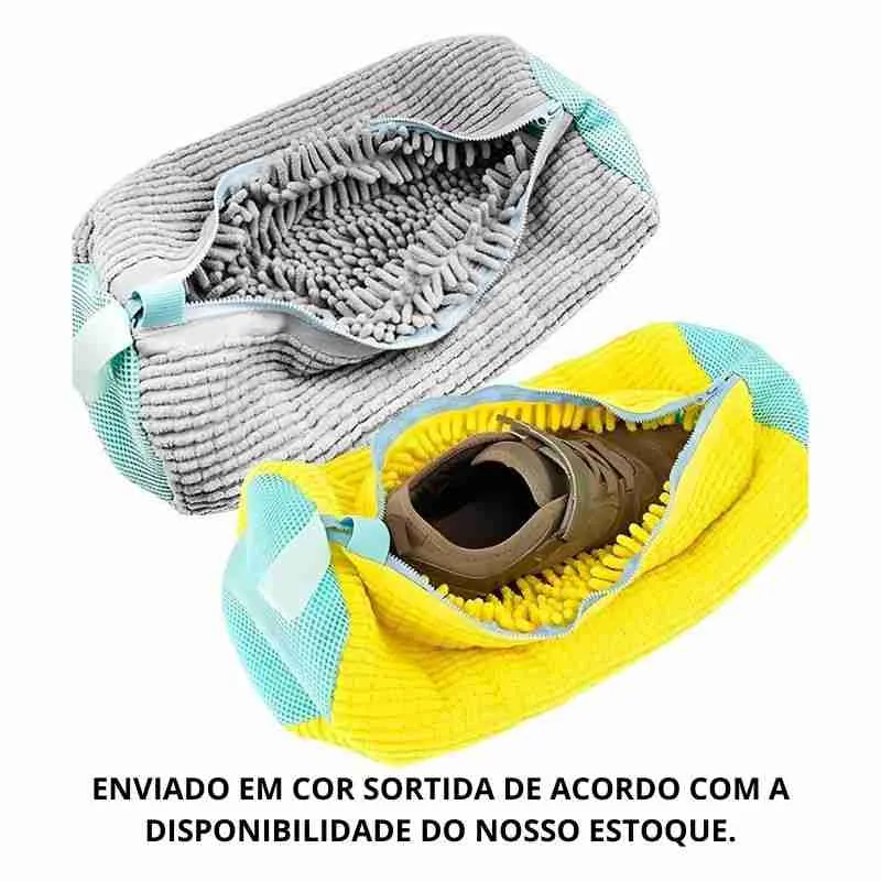 O Saco De Lavagem Para Sapatos E Tênis Máquina De Lavar foi desenvolvido em material resistente e acolchoado, com estrutura interna de microfibra e chenille que protege o tênis durante a lavagem.