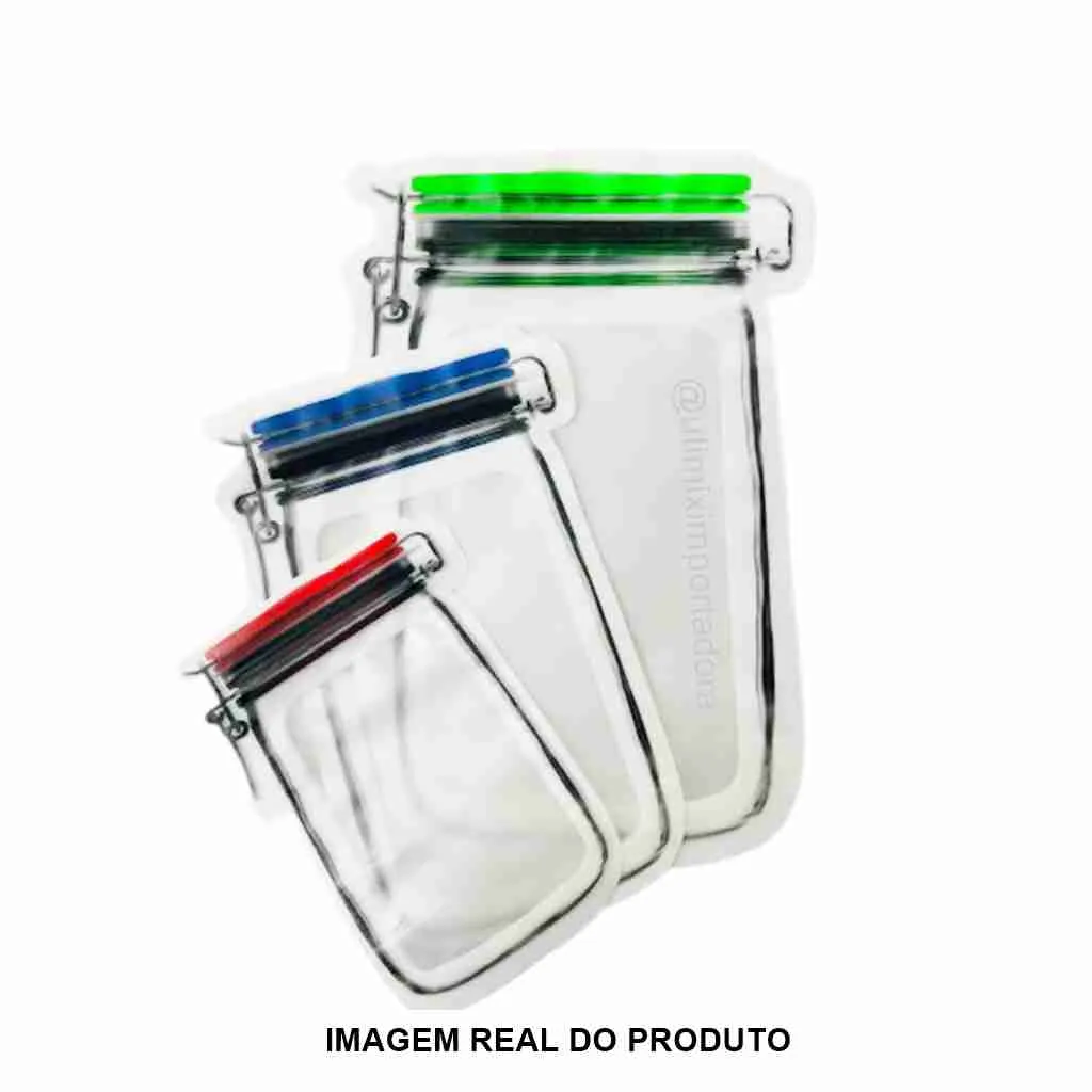 Saco Zip Lock Reutilizável Hermético Para Alimentos e Mantimentos – Kit c/ 3