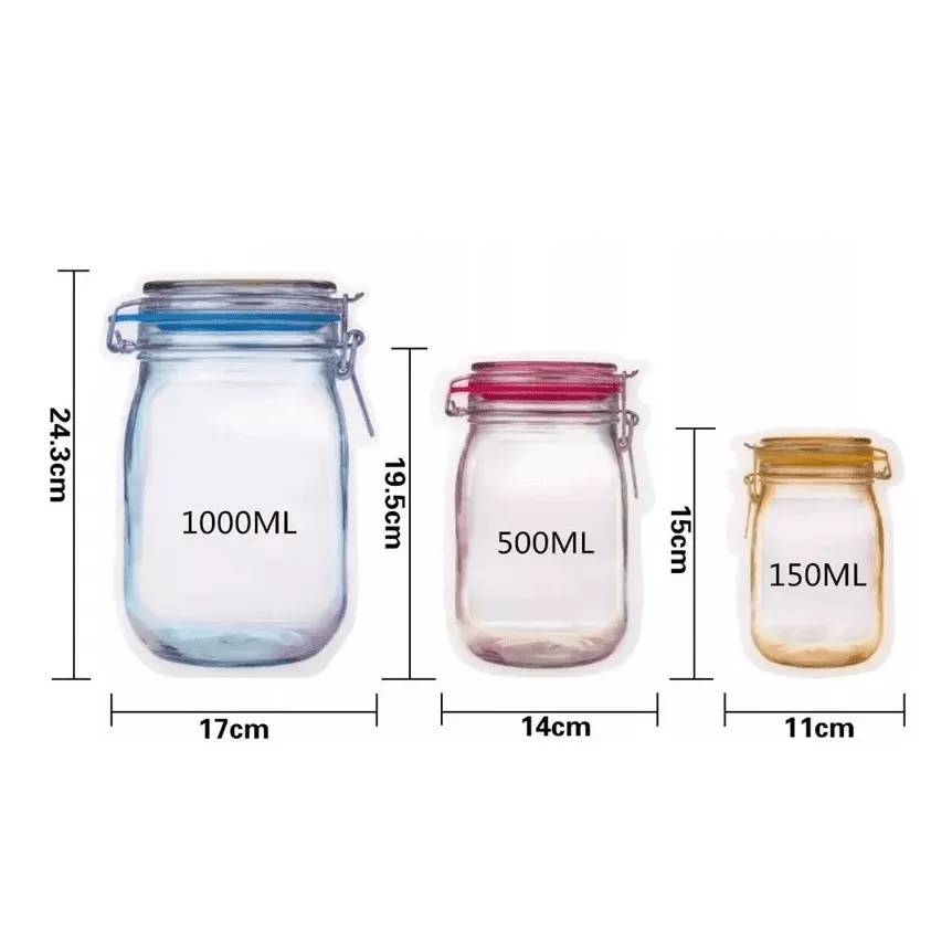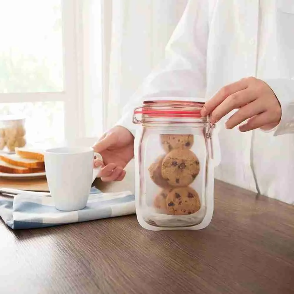 Você também pode utilizá-los em casa para armazenar alimentos com segurança e conservar o sabor original por mais tempo. Um produto inovador que promove a economia de espaço em armários e geladeiras. Armazene chás, doces, sementes, frutas desidratadas, macarrão (antes de ser cozido), biscoitos, grãos, nozes, castanhas, etc.