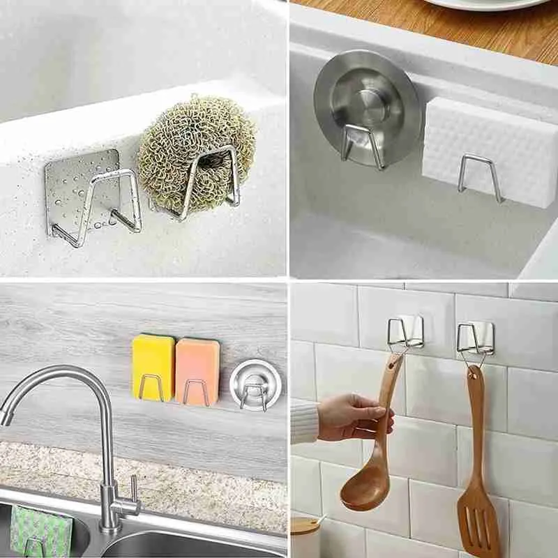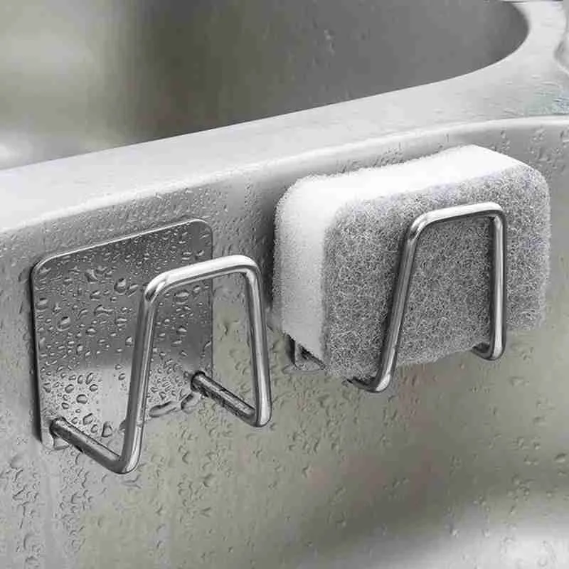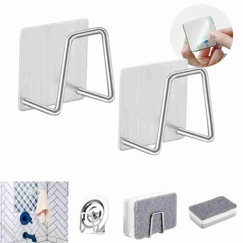 Suporte De Esponja Aço Inox Gancho Adesivo Cozinha Banheiro E Lavanderia