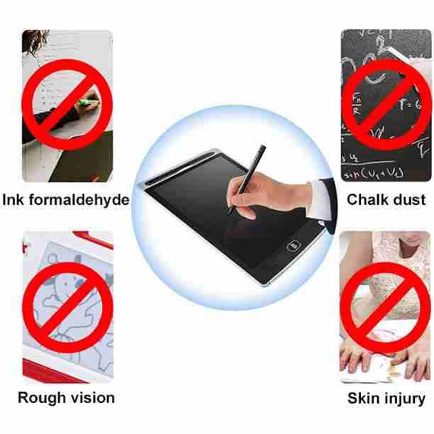 * Uso sem tinta e sem complicações. Ele vem com sua própria caneta para escrever e desenhar. A placa em si é sensível à pressão, por isso não exige muito esforço para usar e limpa sua tela com a operação de um único botão.
