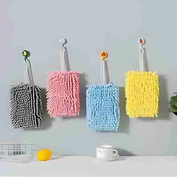 Toalha de Mão Chenille em Microfibra com Corda para Pendurar