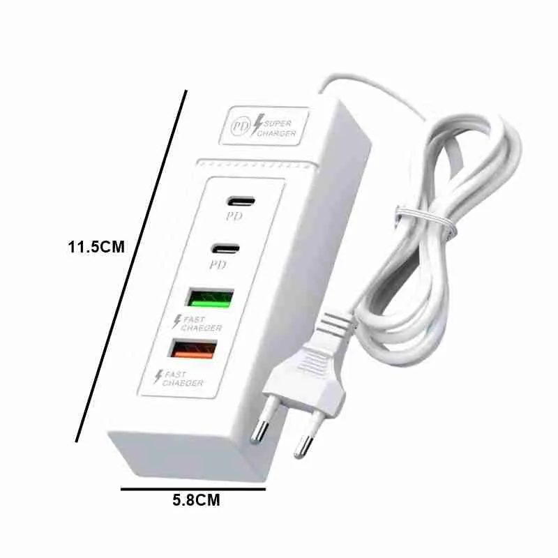 Tomada Carregador De Celular USB E PD 4 Portas