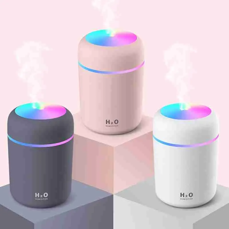 Umidificador De Ar Portátil USB Com Luz Led Colorido 300ML