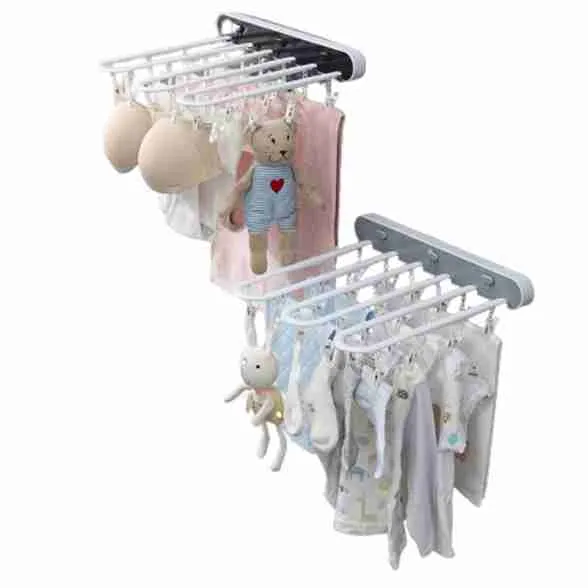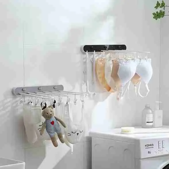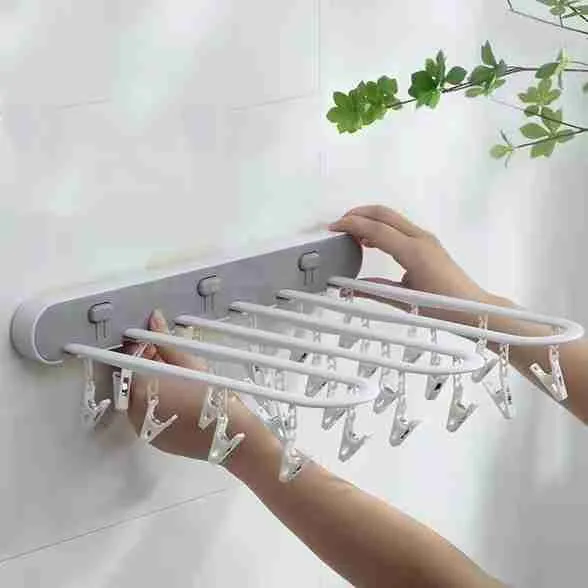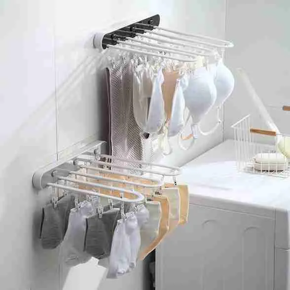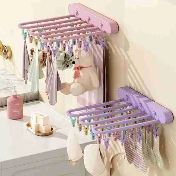 Varal De Parede Dobrável E Retrátil Com Prendedores Integrados