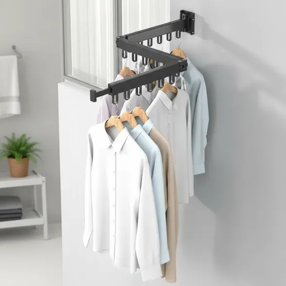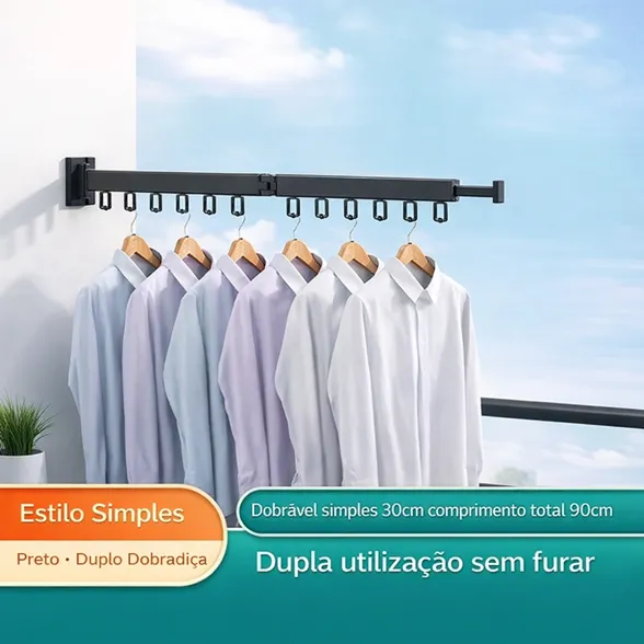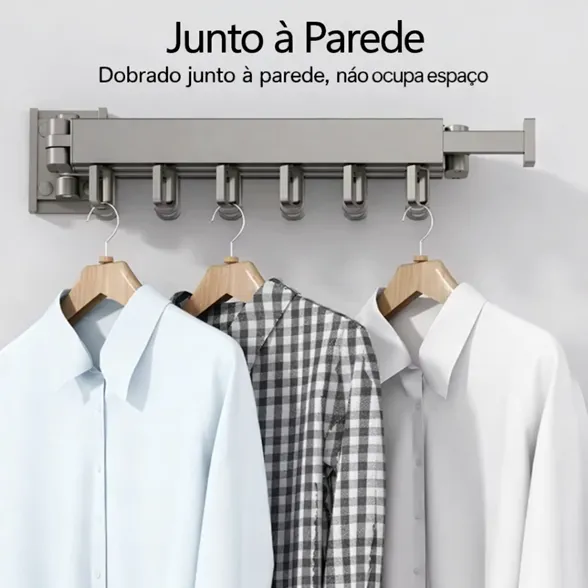 Varal de Roupas Dobrável com Suporte para Cabides de Parede