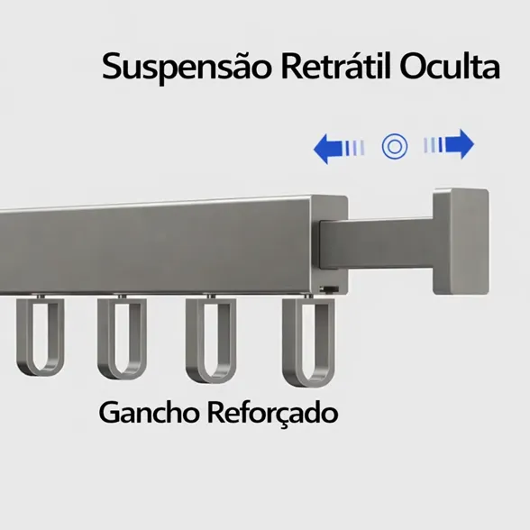 Além disso, o sistema dobrável facilita o uso no dia a dia, pois você abre o varal somente quando precisa e o recolhe após o uso, mantendo o ambiente sempre organizado.