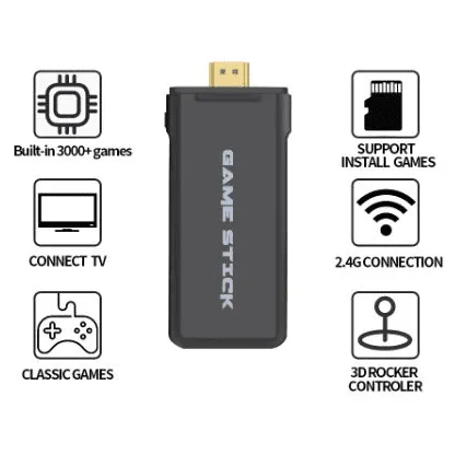 Esse super video game stick é compatível com conexões HDMI, podendo ser ligado em TVs, monitores ou projetores com entrada HDMI, suportando resoluções Full HD de 1080p.